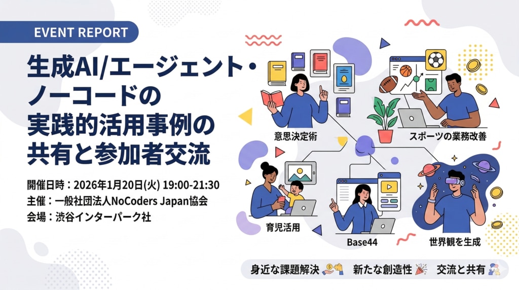 【後日レポート】2024年ノーコードベンダー&パートナー忘年会 / ノーコードとAIの融合:未来を拓く最新トレンドノーコードイベントMeetup交流会ノーコードベンダー交流会AIエージェントレポート生成AI2024-12-13 06:17